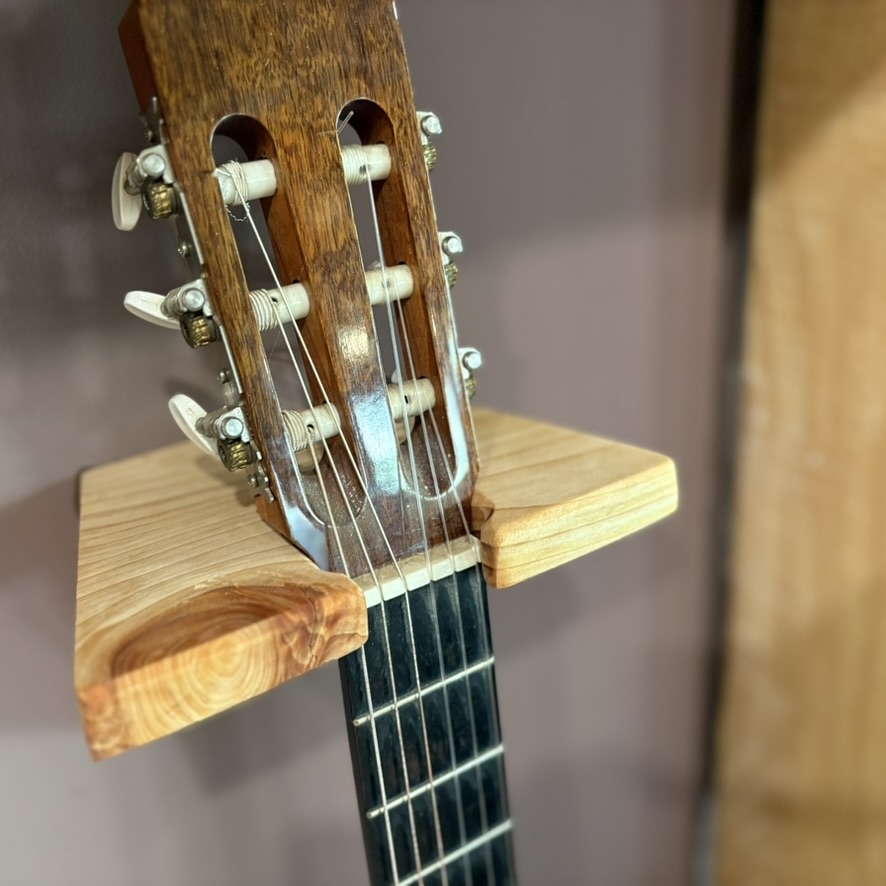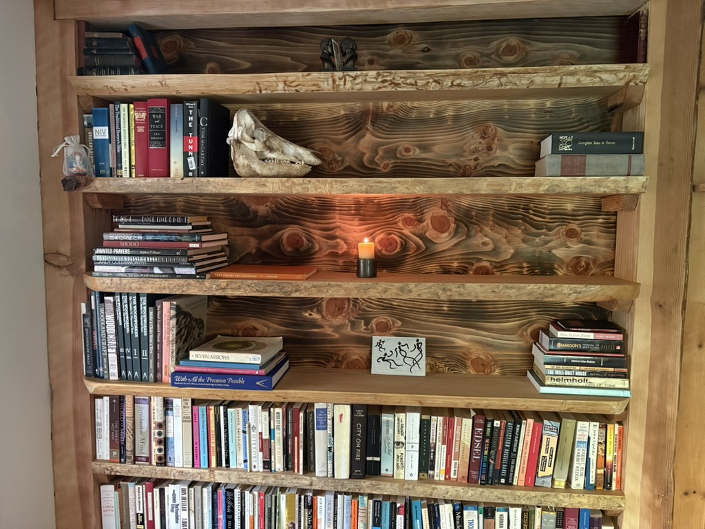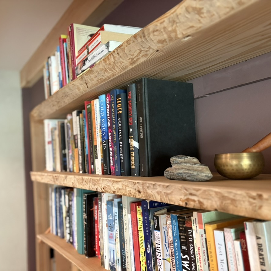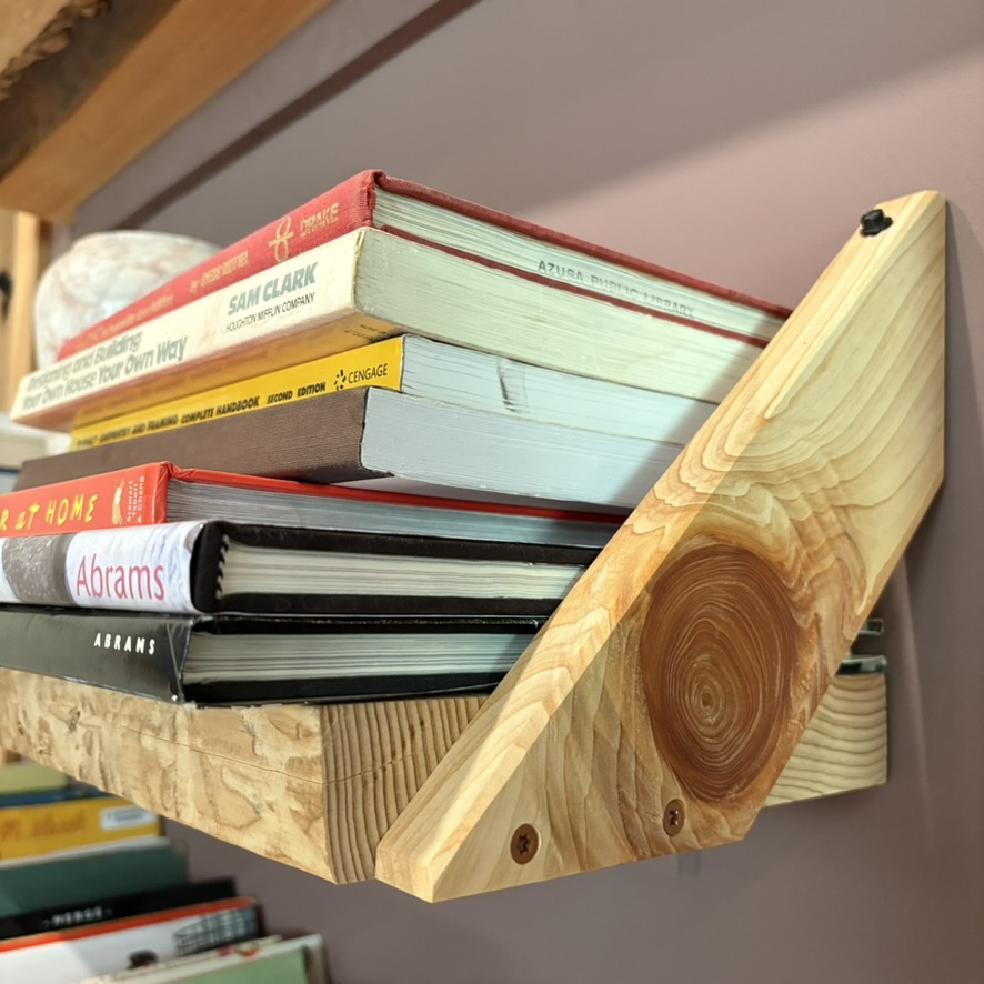 Live edge library shelving with instrument holder