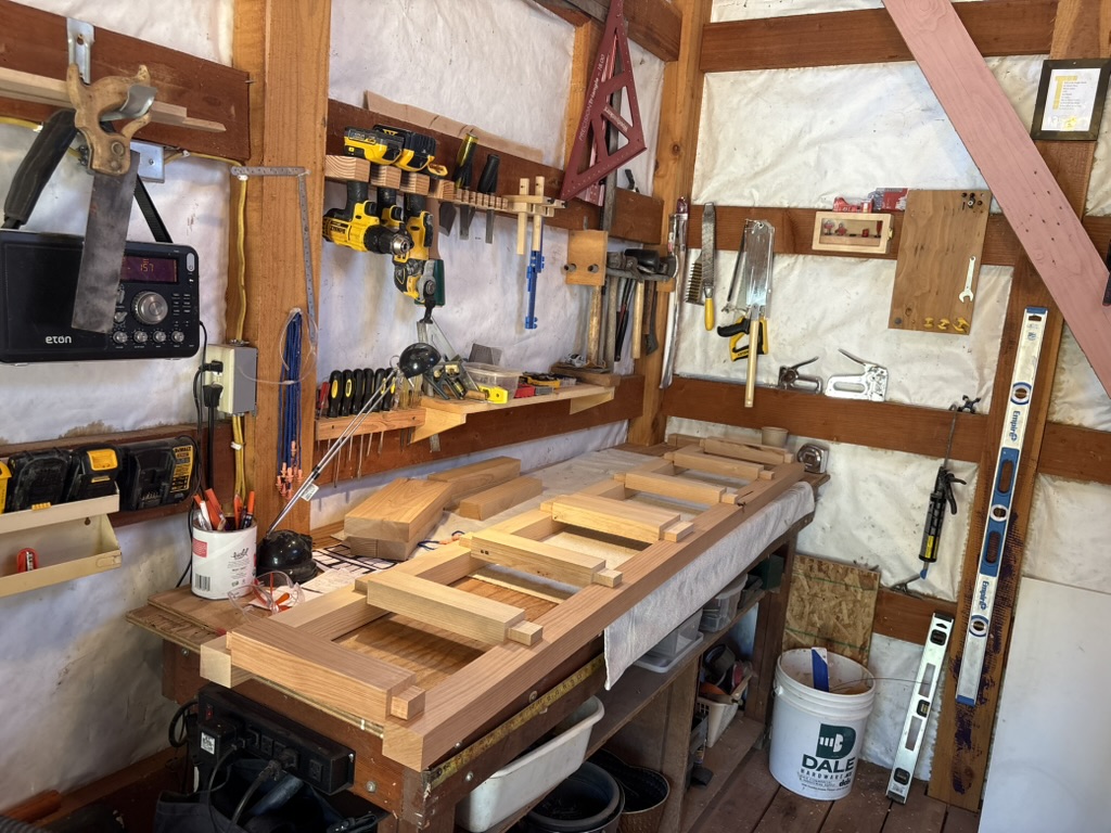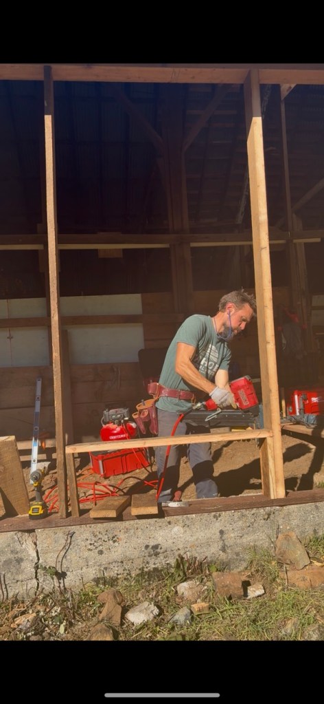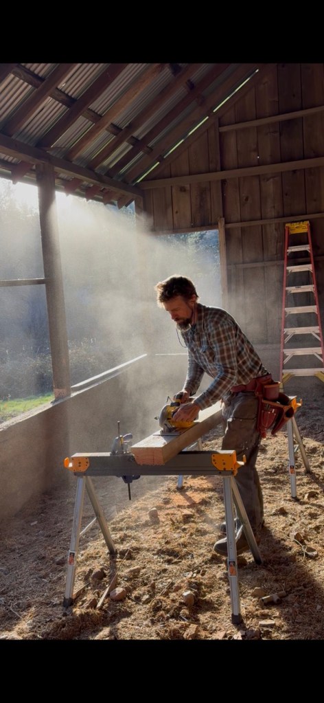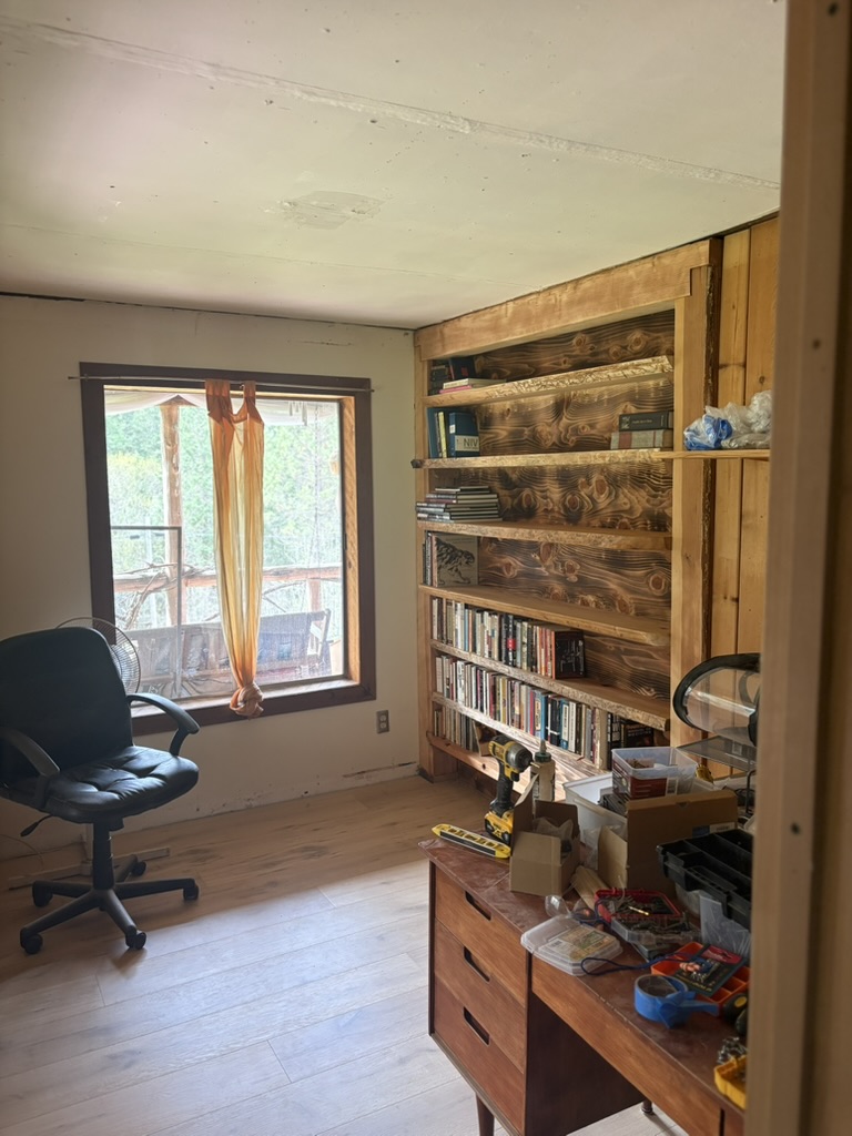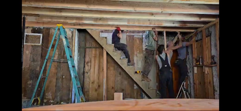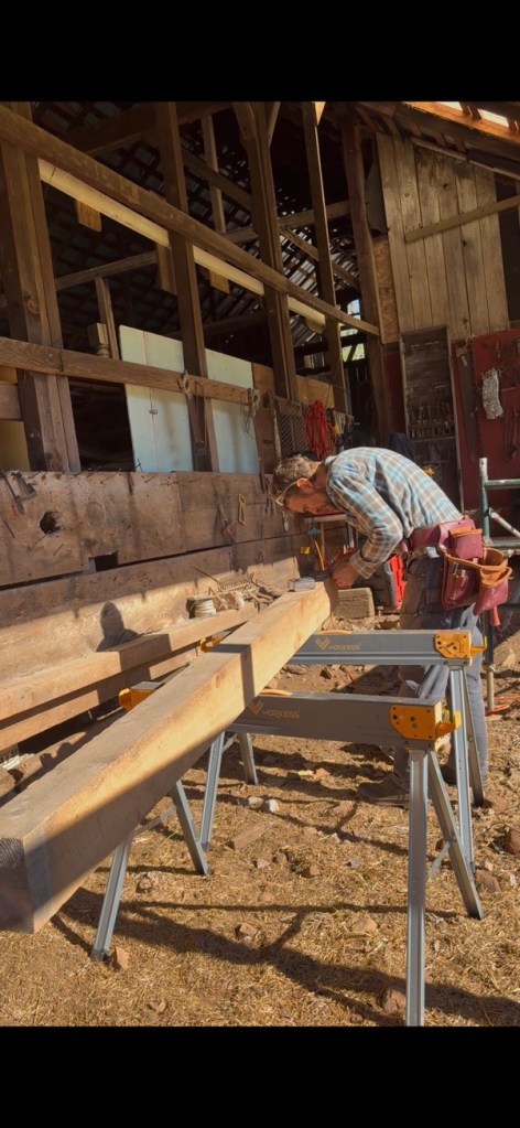 Interior timber framing: replaced falling-apart ceiling joists with new 4X8 members that spanned living room and terminated in bathroom. Designed and managed all construction.