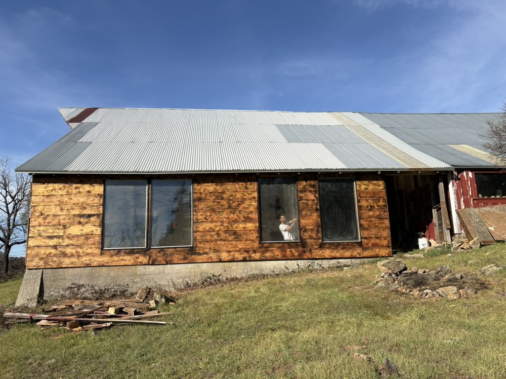 New barn siding. Used burnt cedar planks to update a century-old barn into an artist and event space.