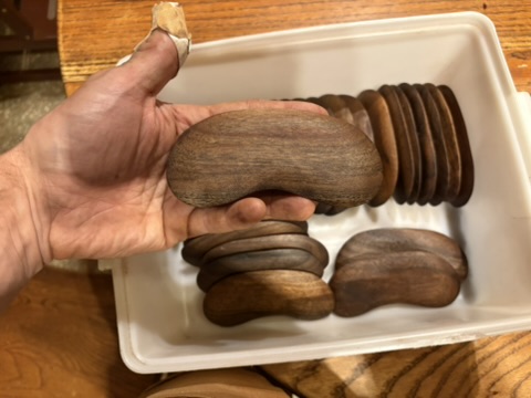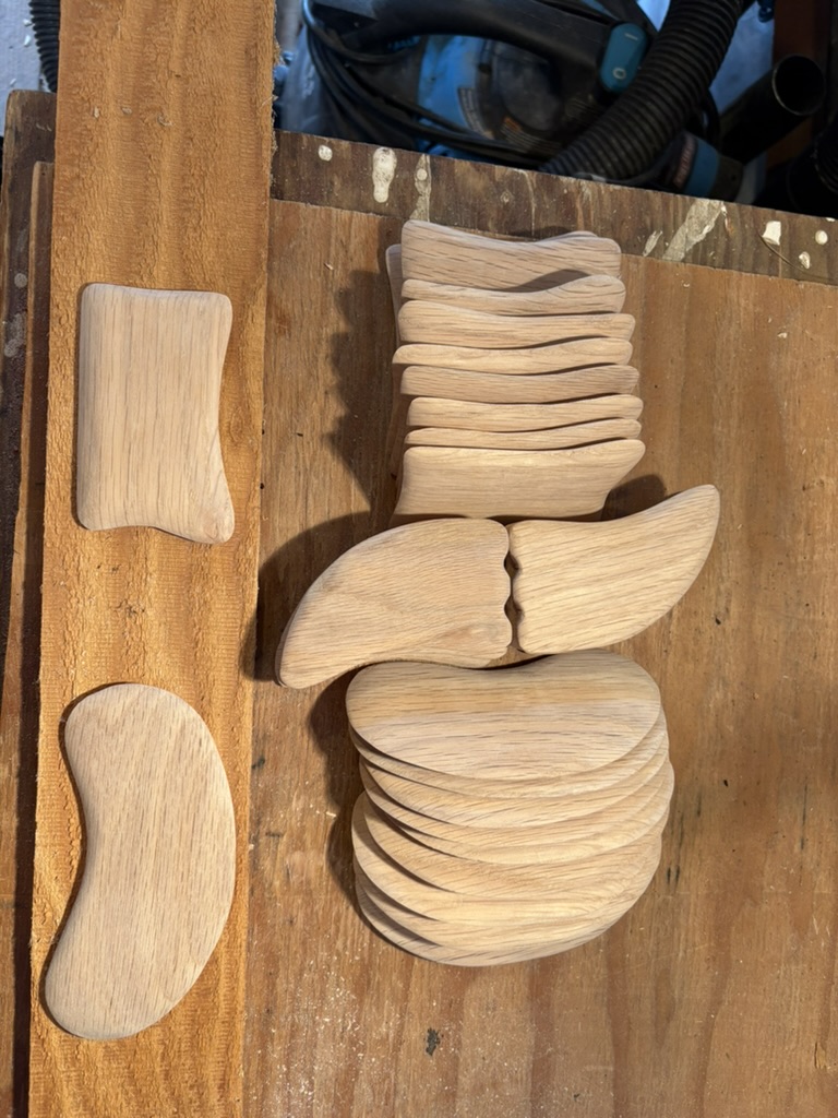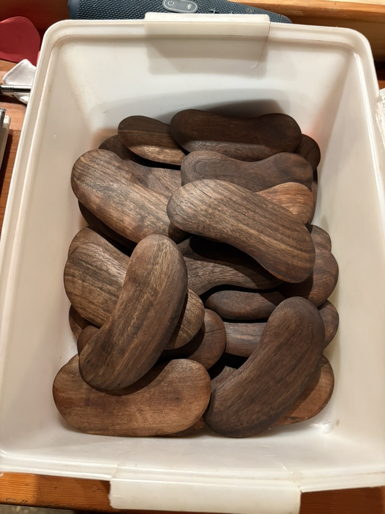 Gua sha massage tools for a local body worker. Once batch done with white oak, a second with black walnut.
